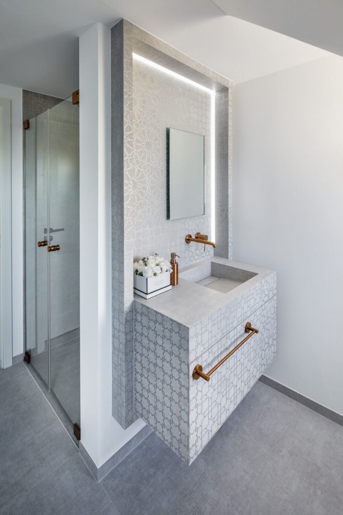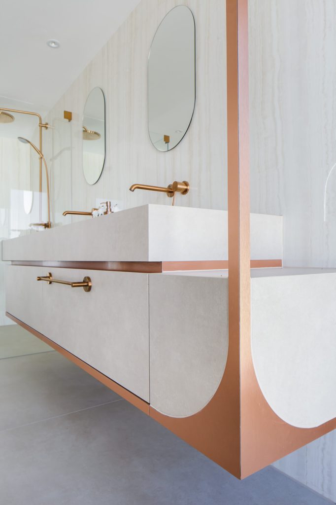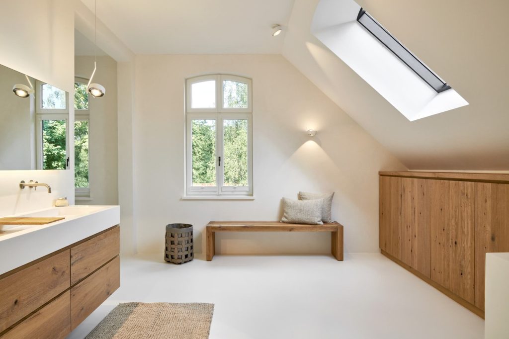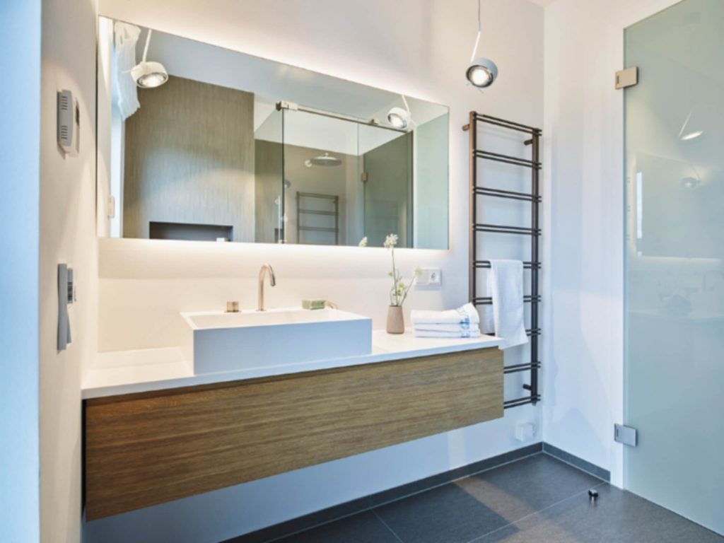 Von Wand zu Wand gefertigte Waschtische oder exakt eingepasste Möbel sind problemlos möglich.