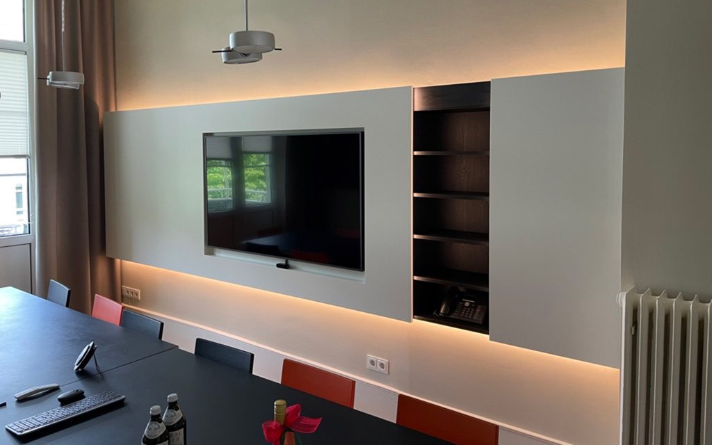 Wir passen Ihr neues Möbelstück an vorhandene oder neue Technik an, sodass Fernseher, Lautsprecher, Receiver oder versteckte Kabel ideal untergebracht sind.